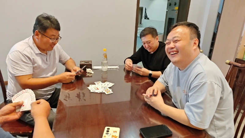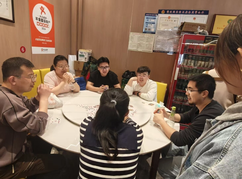 Після короткого відпочинку опівдні, о 12:30 ми переїхали в готель і розпочали цікаве змагання з гуандань. Як проект створення команди, який люблять усі, Guandan не тільки перевіряє особисте логічне мислення, але також приділяє більше уваги мовчазній співпраці між партнерами - «Хороша карта не конкурує на мить, і мовчазне розуміння партнера важливіше, ніж особистий героїзм», що саме є значенням командоутворення Guandan.